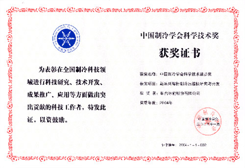 2005年1月,冰輪“新系列螺桿制冷壓縮機(jī)研究與開發(fā)”榮獲中國制冷學(xué)會科技進(jìn)步一等獎。