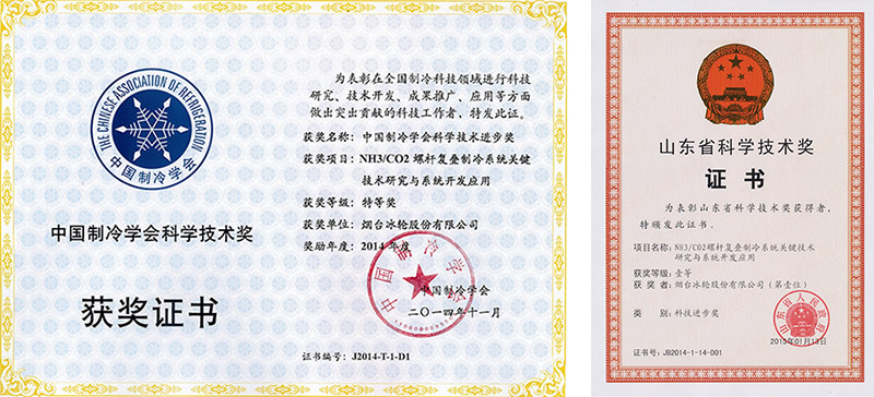 “NH3/CO2螺桿復(fù)疊制冷系統(tǒng)關(guān)鍵技術(shù)研究與系統(tǒng)開發(fā)應(yīng)用”獲山東省科技進(jìn)步一等獎和中國制冷學(xué)會科技進(jìn)步特等獎。