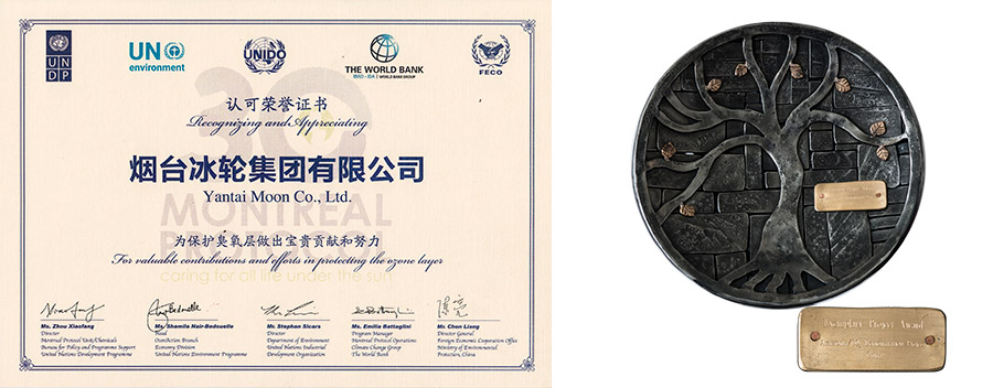 冰輪環(huán)境作為我國唯一企業(yè)榮獲聯(lián)合國“保護(hù)臭氧層示范項(xiàng)目獎”。