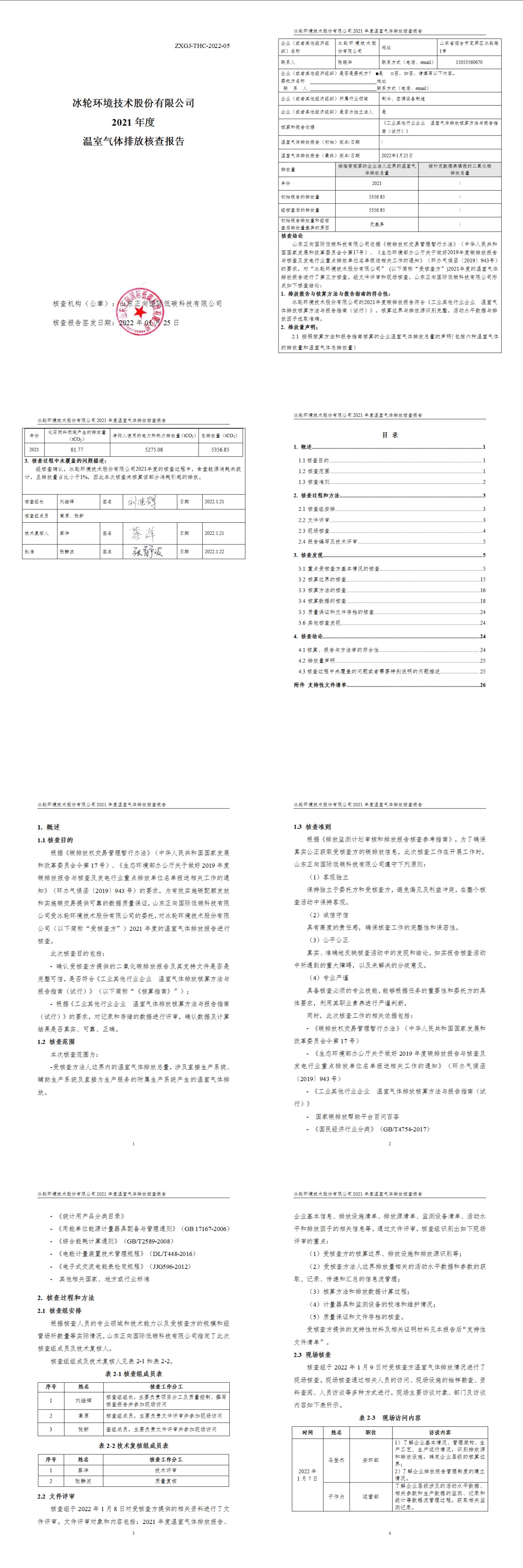 冰輪環(huán)境技術(shù)股份有限公司 2021年度 溫室氣體排放核查報(bào)告